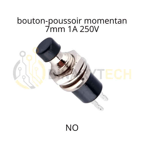 Interrupteur bouton-poussoir momentané 7mm – Normalement ouvert 1A 250V